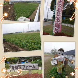 園バスに乗って、さつまいもほりに行ってきました畑にはおいものつるがいっぱい可愛いかかしさんがお出迎え去年経験しているさくら組さん自分の場所がわかると「掘っていいの~?」とやる気満々一人分ずつもみ殻で印をつけておいてくれたのですがそのもみ殻を見て「せんせ~この種植えたらお芋できる?」と目をキラキラさせ