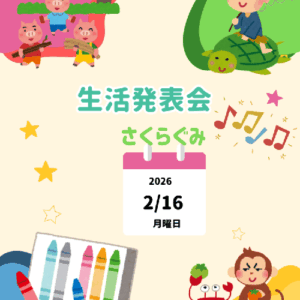 2026年2月27日の給食 2026.02.27 ○ご飯○豚肉のバーベキューソース炒め○マカロニサラダ○味噌汁(大根・人参)続きを読む 2026年2月26日の給食 2026.02.26 ○ご飯○赤魚の黄金焼き○ビーフン○野菜の信田和え続きを読む 2026年2月25日の給食 2026.02.25 ○ハヤシライス○キャベツとほうれん草のサラダ○オレンジゼリー続きを読む 2026年2月24日の給食 2026.02.24 ○ご飯○ハンバーグ(オニオンソース)○フライドポテト○ひじきのミルキーサラダ続きを読む さくらぐみ『生活発表会』 2026.02.21 さくら1くみ『さるかに合戦』さくら2くみ『3匹のこぶた』さくら3くみ『クレヨンのくろくん』さくら4くみ『うらしまたろう』こんなにイキイキと…こんなに堂々と…お友達と目と目を合わせ手をつなぎ心強い仲間がいっぱい優しく見守る担任の眼差し子ども達の一生懸命な姿って本当に素敵✨続きを読む 1 2 3 … 319 »