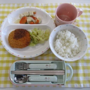 ○ご飯○メンチカツ○キャベツ添え○高野豆腐と野菜の煮物