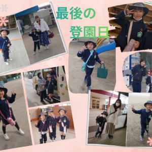 明日は「そつえんしき」年長組さんは最後の登園日「ようちえんイヤぁ~」と泣いていたこともあったね今は、「行ってきま~す」とお家の人の手を離し、走っていくほどの頼もしさお兄ちゃんやお姉ちゃんと一緒に登園するのも今日で最後延期になっていた「お別れ会」在園児と卒園児とで歌のプレゼント交換可愛らしい在園児の歌