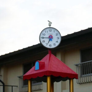 11月のスポーツフェス実施は初✨まだ薄暗く肌寒い朝6時に集合し準備Start朝、どんなに早くたって、元気いっぱい✨パワフルな職員たち万国旗をはり、門を設置し、用具を出し隠れミャクミャクをあらゆるところにペタペタサンシャインの時計にもペタッこの時間には準備OKとなっていまし