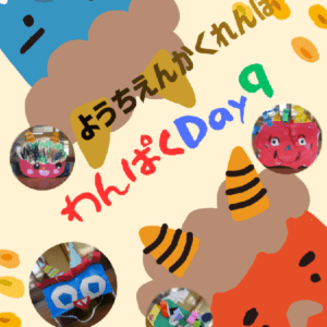 わんぱくDay9は「節分」イベント『ようちえんかくれんぼ』子ども達は自分で作ったお面をかぶって「ちびっこ鬼に!」ようちえんのどこかに隠れている『親分鬼11人とラスボス鬼』を探せ!の任務を任せられ、幼稚園の中を捜索にあたりますちびっこ鬼に渡されたのはスタンプカード年齢によって3段階に分かれていますひと