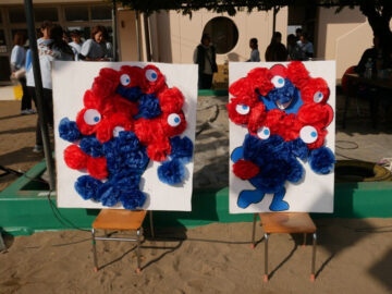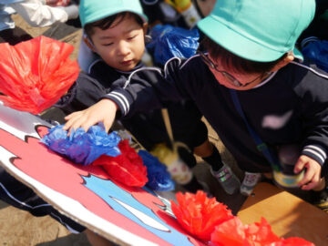 「ミャクミャクを作ろう!お花をはりに来て~」のアナウンスで我先にと集まって来てくれました