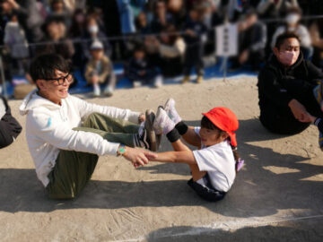 持ち上げる方も、ぶらさがる方も筋力が試されるっ