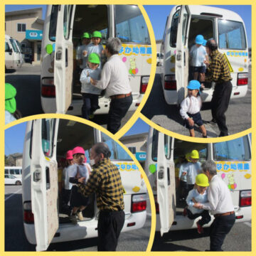 豊かな経験、キラキラの毎日! 避難訓練 2025.11.22 今回の避難訓練は 「バスに乗っているときに!」を想定して行いました バスに乗っているときに避難しなくちゃいけなくなったら… バスの中でひとりぼっちで残されちゃったら…(そんなことは絶対にあってはならないけど) もしも!に備えて訓練をしました 非常ドアから脱出してみました! 高さがあるので、バスの運転手さんに手伝ってもらいます バスから降りたら安全な場所で待機します 【新しいページへ】 【過去のページへ】