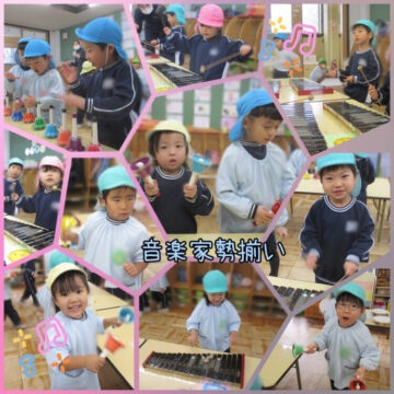 あわてんぼうのサンタクロースのピアノに合わせて楽器遊び