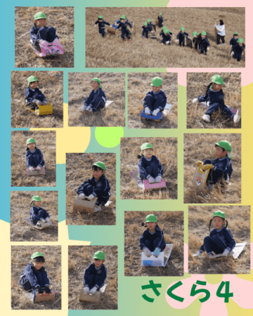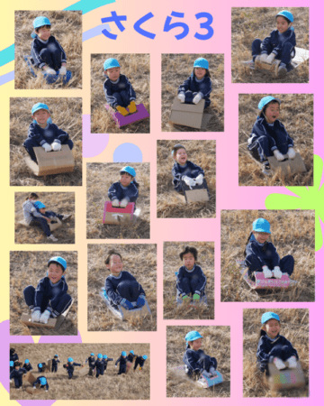 豊かな経験、キラキラの毎日! 土手滑り(さくらぐみ) 2026.02.12 強風で2クラスだけ延期💦 1週間後は暑いくらいの晴天🌞 思いっきり滑ってきたよ~ はじめてはドキドキ💦 経験するってスゴイっ! どんどん上達 雪の上ではないけれど… オリンピック選手顔負けの滑りに✨ 【過去のページへ】