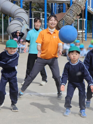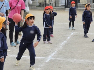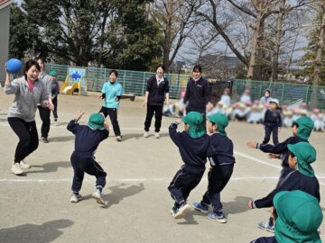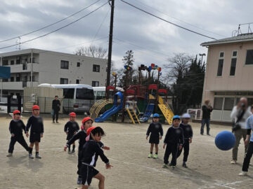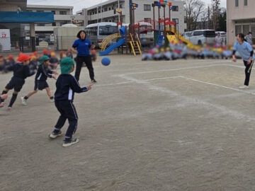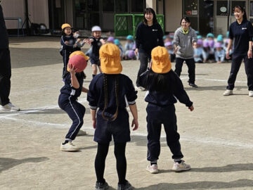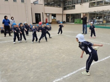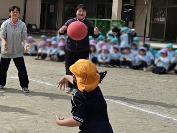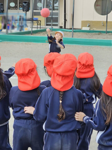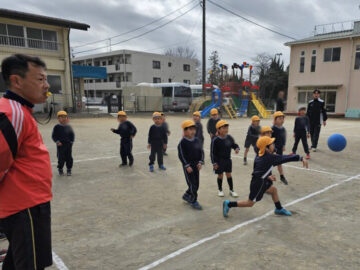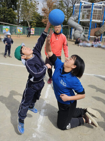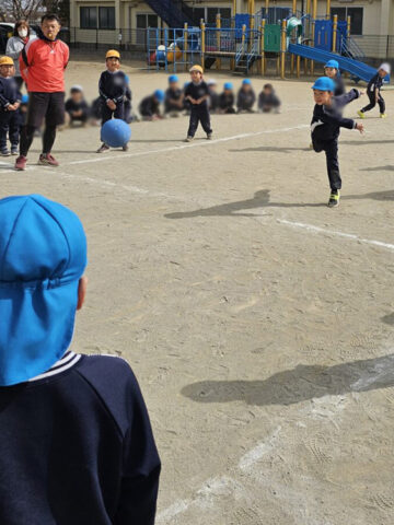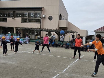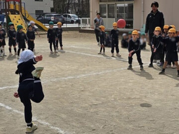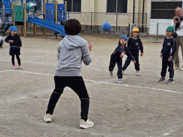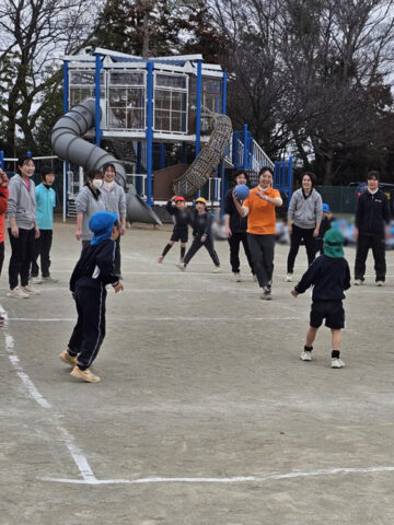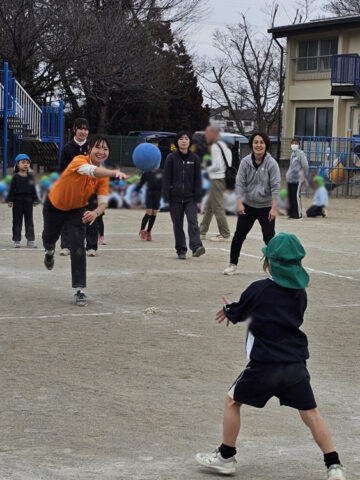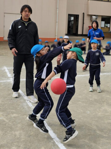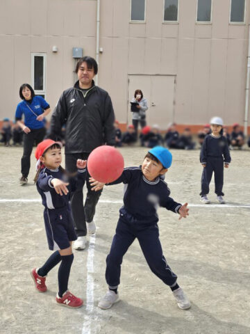 ハンデをつけて先生チームは利き手ではない方で投げる!ことに