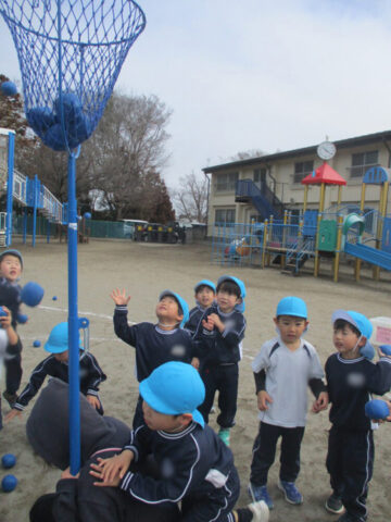 カゴめがけて高~く!